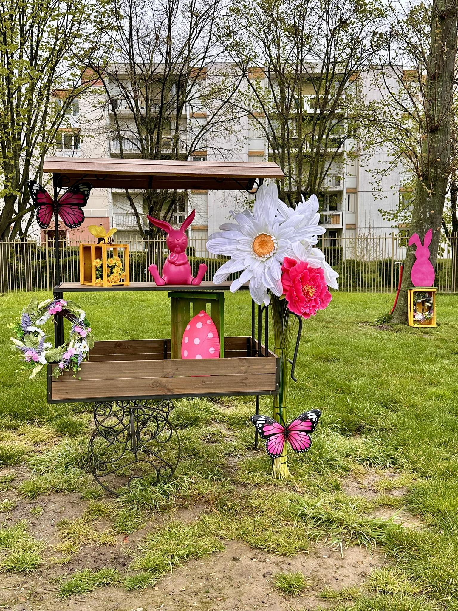 Magnifique décoration du parc à Bezons pour la traditionnelle chasse aux œufs de Pâques