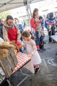 Décoration et animation du marché campagnard de la ville de Chevilly Larue : décoration ancienne avec des fanions, bottes de pailles, tonneaux…. Atelier pour les enfants : jardinage et fabrication du pain…. Découverte pour certains, souvenirs pour d’autres….