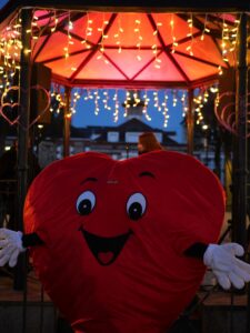 A l’occasion du marché nocturne de la St Valentin à Draveil, déambulation de notre joyeuse mascotte Cœur.